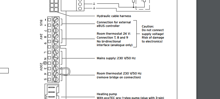 Vaillant ecotec plus 430 installation manual page: What the wiring looks like now for ac (bottom of the connection diagram): I have ave a vaillant boiler and just now i used the kitchen tap water and there is not hot water. The previous thermostat was battery operated and just on off for heating. Thanks, by the way, for the wiring diagram.